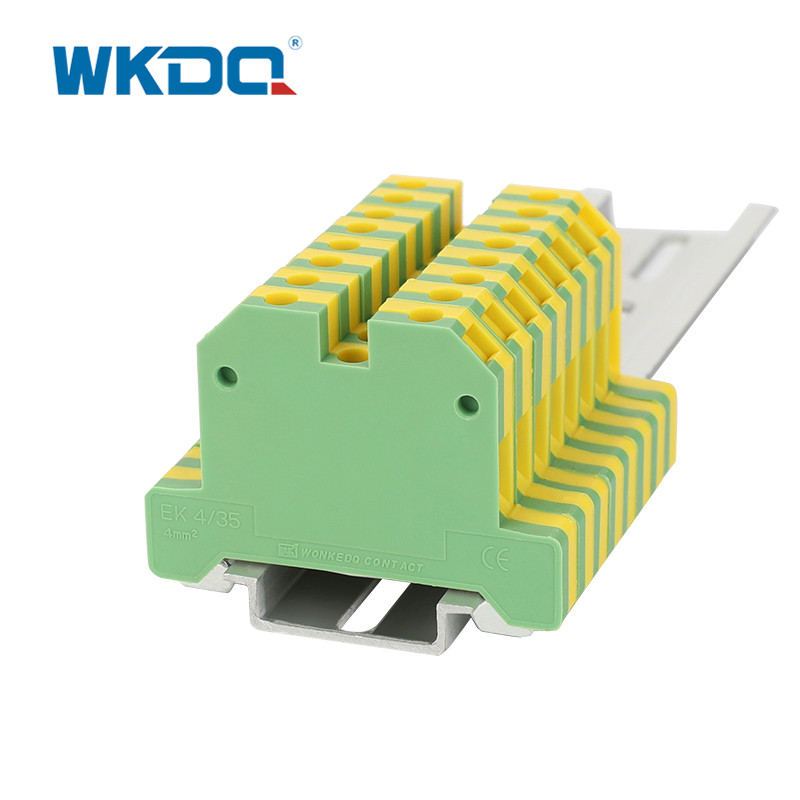 Blok terminal pembumian menyediakan bus pembumian yang mudah dikenali, nyaman, dan tertata rapi yang dipasang pada rel DIN. Blok terminal pelindung memiliki penjepit yang kuat untuk memastikan fiksasi yang erat pada rel DIN untuk mencapai fungsi PE.