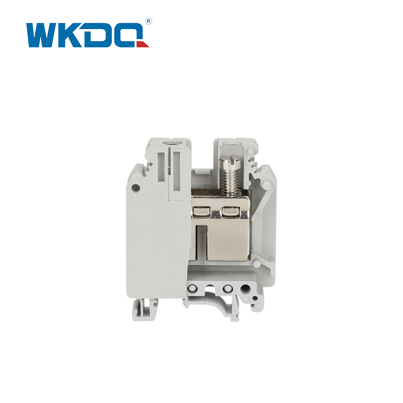 Blok terminal satu tingkat dilengkapi sambungan sekrup dan dirancang untuk mengakomodasi berbagai aplikasi. Dengan penampang nominal 35mm2, mereka mampu menangani arus listrik yang besar. Blok terminal ini dibuat menggunakan bahan isolasi tahan api, menjamin keamanan dan daya tahan. Komponen logam terbuat dari kuningan berlapis nikel, memastikan konduktivitas yang sangat baik dan ketahanan terhadap korosi.