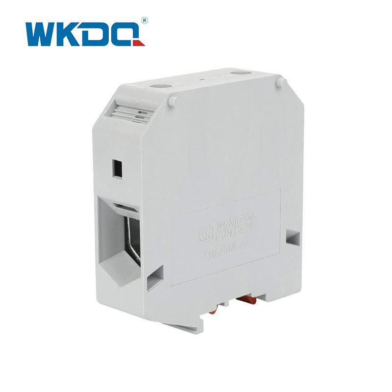 Blok terminal arus tinggi JUKH menyediakan koneksi yang aman dan andal dengan fitur konstruksi yang unggul. Ini termasuk tiga titik pemusatan kawat di dasar selongsong berbentuk prisma, permukaan kontak bergalur untuk resistansi kontak rendah, dan sekrup yang diamankan dengan elemen pegas. Rincian tambahan tentang blok terminal ini adalah sebagai berikut: